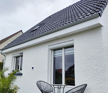 Thorinnov propose en complément l’habillage de pannes (pignon). En PVC ou en aluminium, cette solution évite le pourrissement de la charpente, très fréquent sous le climat normand.